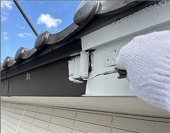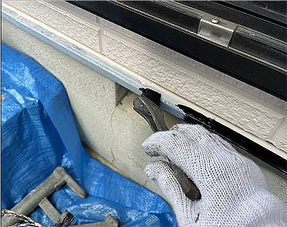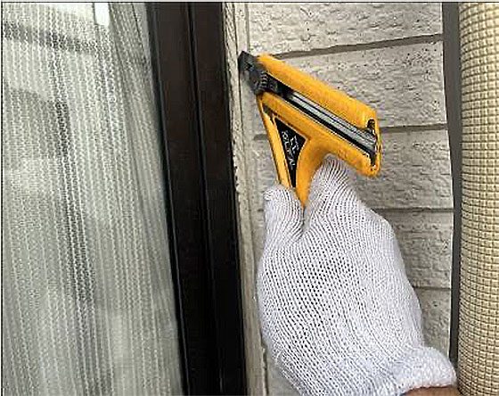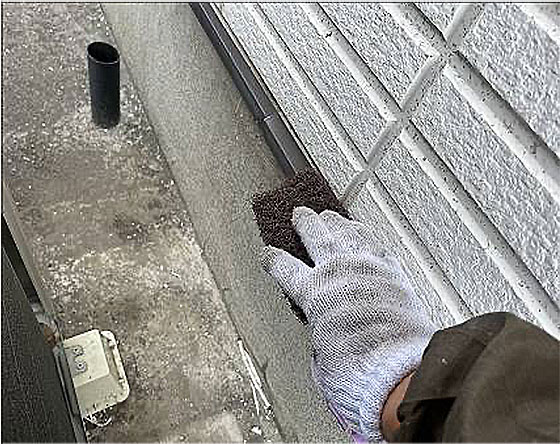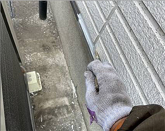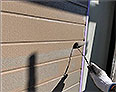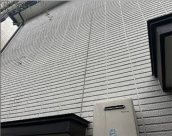 外壁サイディングの施工事例です。外壁には経年劣化による退色、チョーキング現象が視られました。コーキングにも経年劣化による亀裂 痩せが視られました。撤去~新規打ち直し作業を予定しております。