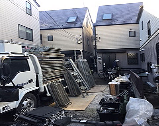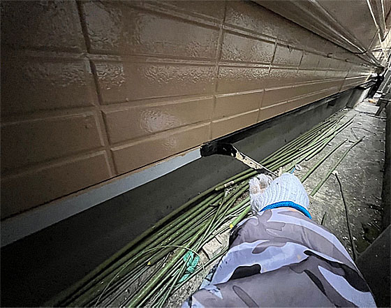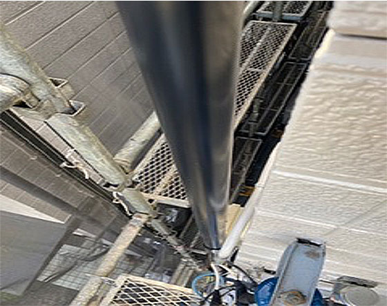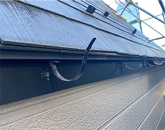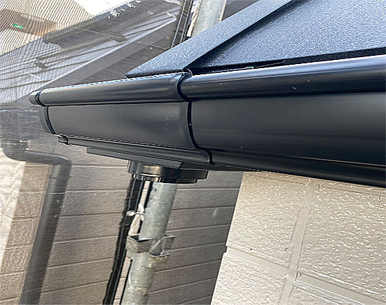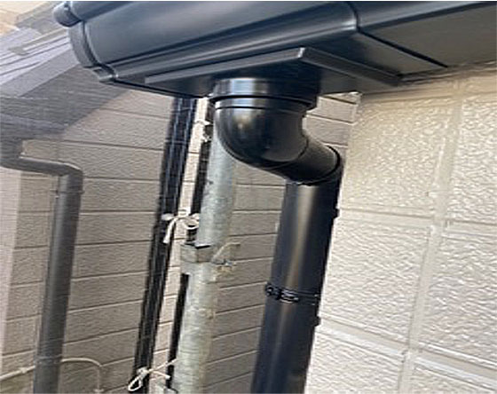 外壁と雨樋交換の施工事例です。昨今の猛暑により塩ビ製の雨樋は劣化が進みやすく、さらにゲリラ豪雨によって横樋がたわみやすくなっています。放置すると雨漏りや外壁の損傷につながる恐れもあるため、定期的な点検と早めの対応をおすすめします。