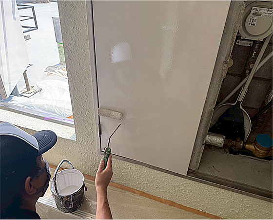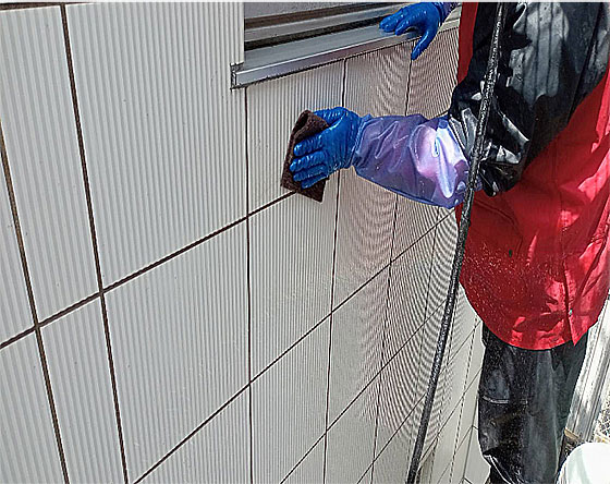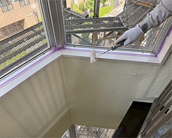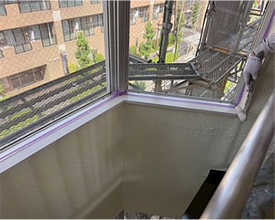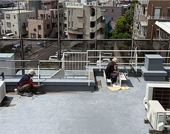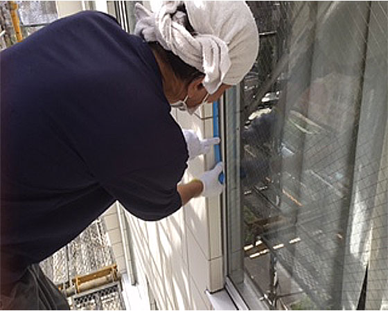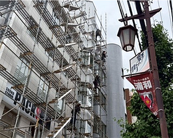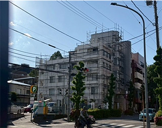 地元の知り合いが所有するビルの工事でした。約1か月と長い大規模修繕工事でした。 施工前点検はSK化研様の監修の元で工事に入りました。