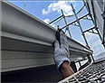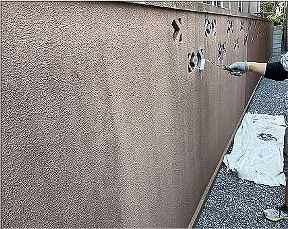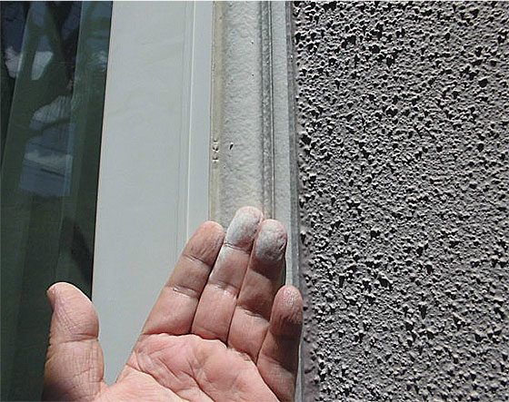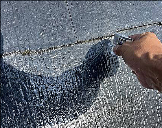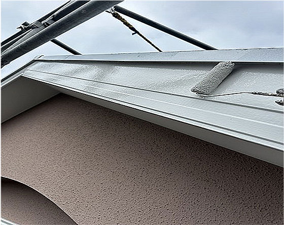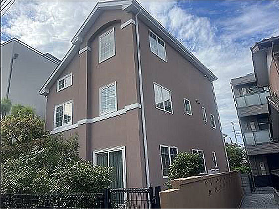 屋根コロニアルネオ、外壁モルタル+単層弾性の施工事例です。外壁にはカビ・簿などの微生物の発生が視られました。この事から先ずは高圧洗浄時にカビ除去剤を浸透させて完全死滅をさせてから塗装工程に入ることが大切であると弊社では考えております。屋根には現状は割れ・砂落ち等は視られました。従ってこの屋根材はコロニアルネオとというノンアスベスト素材であると考えます。熱に弱く割れたりする事が懸念されますので双方充分協議を行いこの屋根材に関しては考えていきたいと考えております。また、メーカー様の見解等も確認しながら進めるべき箇所と弊社では考えております。
