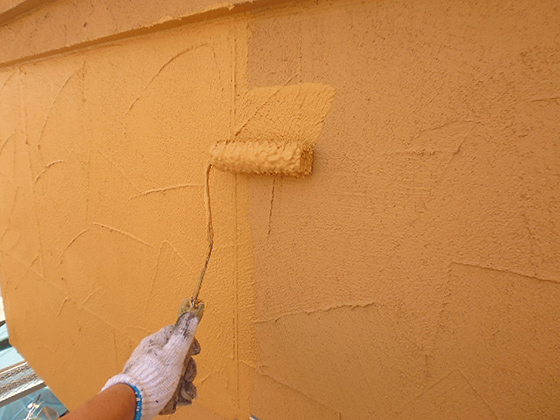 外壁モルタル、ジョリパットウエーブ仕上げとアクリルリシン仕上げ。屋根カラーベストの塗装事例です。現状の外壁は汚染が見られる程度です。しかしジョリパットには、汚れ防止機能や防カビ効果、防水効果はありません。今後、浸水・汚染等は進行していく事が予測されます。従って早めの塗装は適切な判断です。また美観の上から、モルタル外壁の目地部分を生かす筆挿し工法をお勧めします。