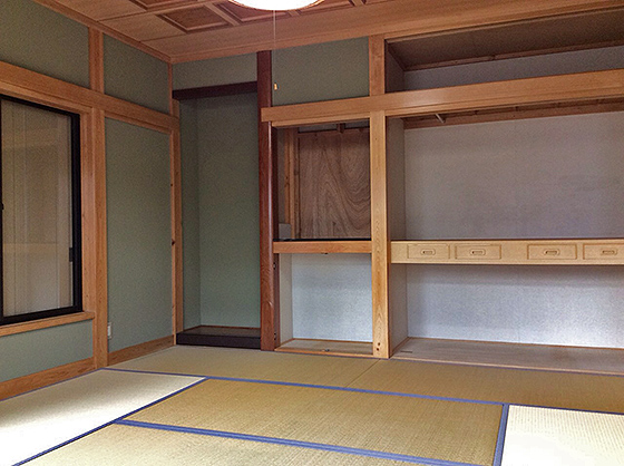 和室、京聚楽壁の塗装と木部灰汁洗い、その他リフォーム