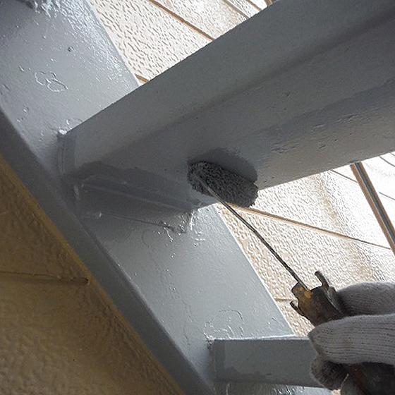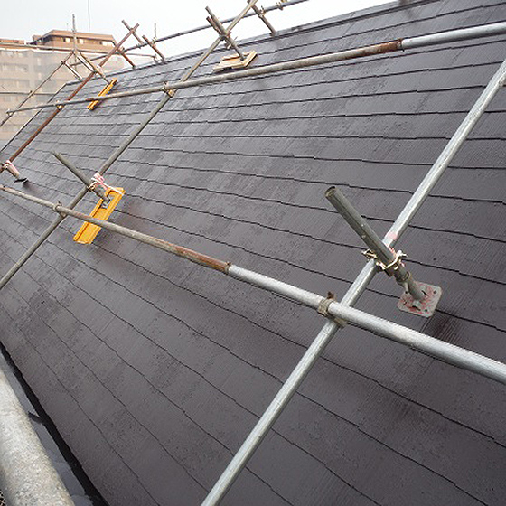 屋根カラーベスト、外壁窯業系サイディングの施工事例です。外壁には経年劣化によるチョーキング現象が視られました。この症状が視られる頃から劣化は進行してきます。既存塗膜は新築時に比べますと機能低下している事が予測できます。弊社では確実な高圧洗浄からの塗装工程がとても大切です。屋根には経年劣化からくる退色等が視られましたが築年数から考えても妥当ではないかと弊社では判断致しました。また、端部へのカビや藻等の微生物の発生が視られました。側溝部分への清掃作業も必要と判断致しました。