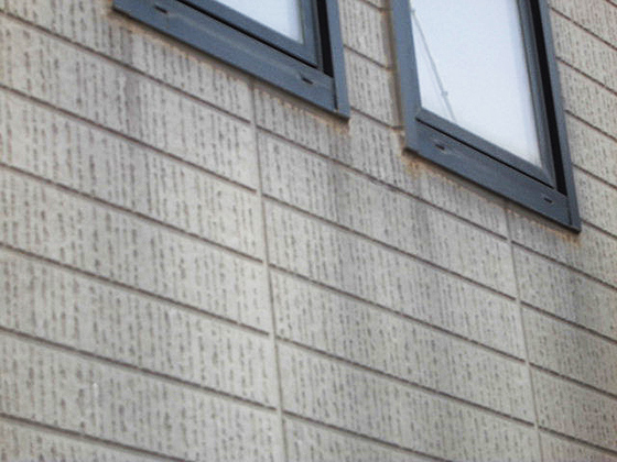 外壁は横目地工法となっています。この横目地コーキングは、建物の揺れに追従しにくく、雨水等による汚染が付着・堆積しやすくなります。適切な塗装により、汚染を防ぐメンテナンスが欠かせない箇所です。