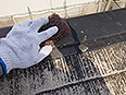 屋根に微生物の発生が著しく、目詰まりを起こしています。このままでは結露により、野地板が腐食する恐れがあります。今回は縁切り作業が重要な工程になります。