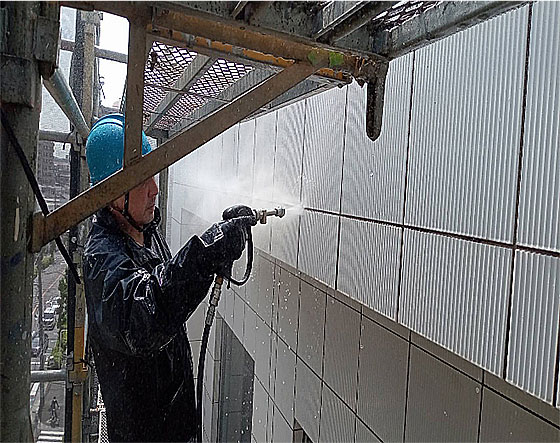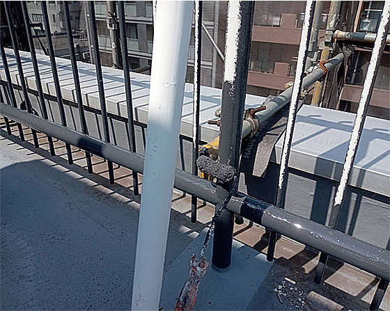 地元の知り合いが所有するビルの工事でした。約1か月と長い大規模修繕工事でした。 施工前点検はSK化研様の監修の元で工事に入りました。