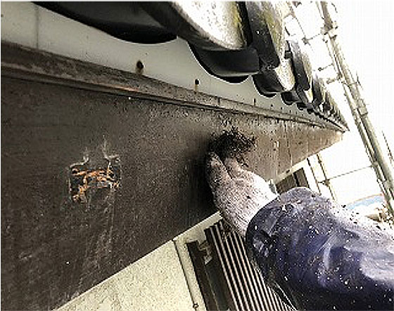 外壁モルタルの施工事例です。外壁にはカビ・藻等の発生が視られました。これらの上から塗装をしても死滅させない限りまた発生してしまう事が予測出来ます。この様な場合弊社では必ず、除菌剤を塗布する事からの塗装工程を取入れております。又、施工方法は低汚染・防カビ・防藻効果等に期待が持てる塗料選択が大切であると弊社では考えております。また、チョーキング現象も視られました。チョーキング現象とは塗膜が粉化してしまった事により機能低下してきている事を表すサインとなります。