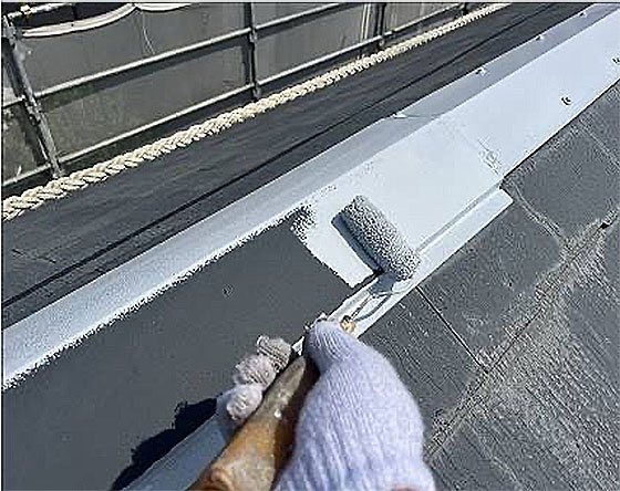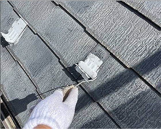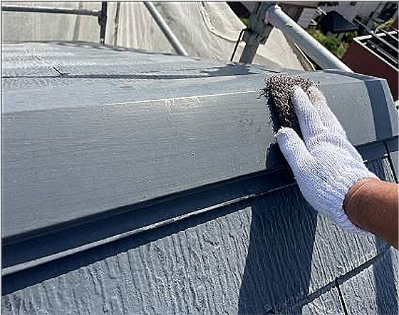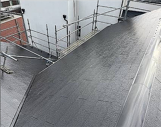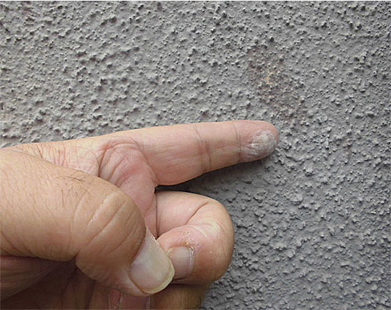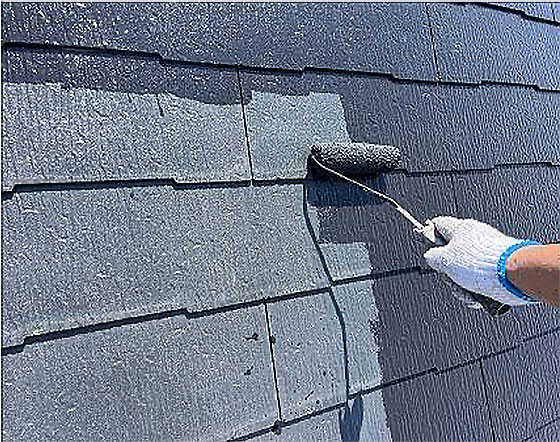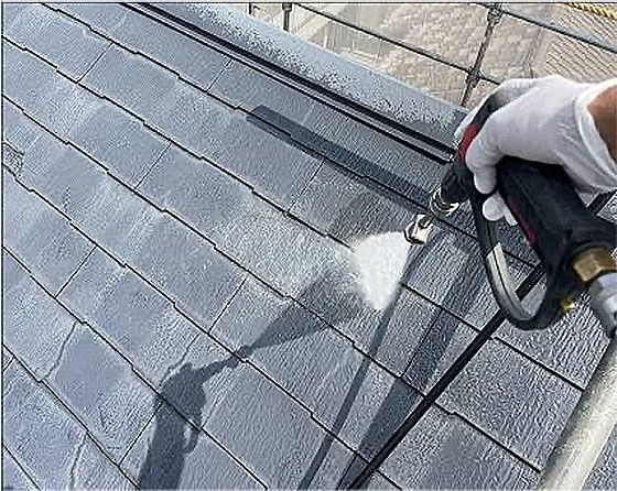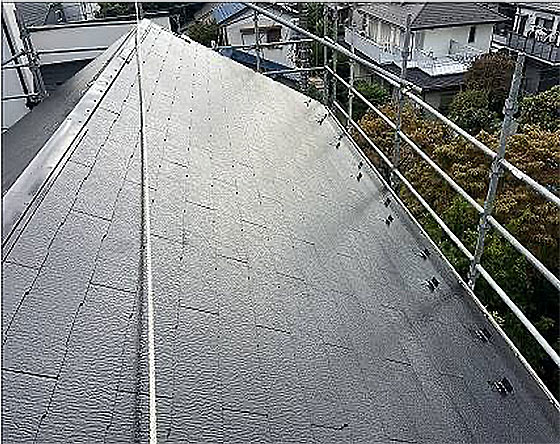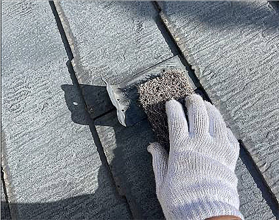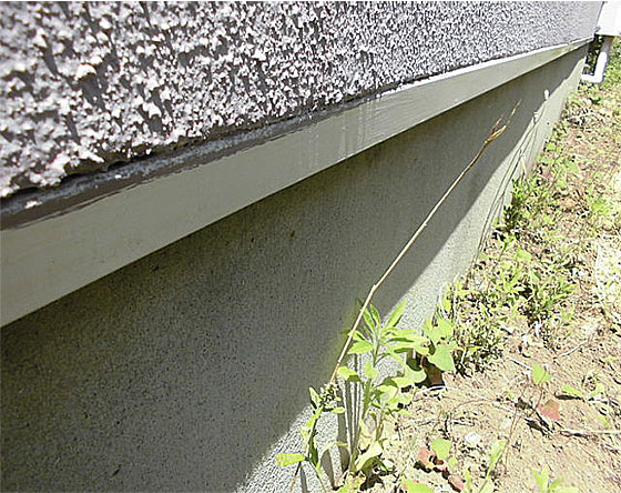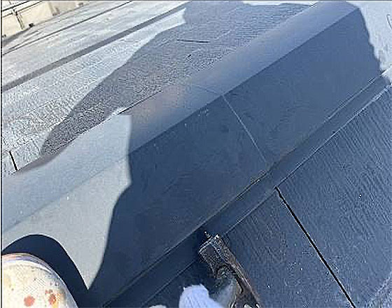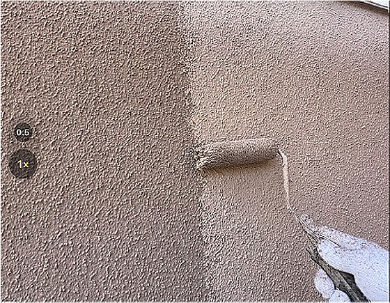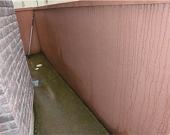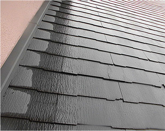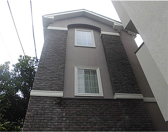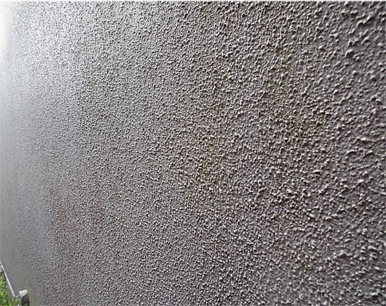 屋根コロニアルネオ、外壁モルタル+単層弾性の施工事例です。外壁にはカビ・簿などの微生物の発生が視られました。この事から先ずは高圧洗浄時にカビ除去剤を浸透させて完全死滅をさせてから塗装工程に入ることが大切であると弊社では考えております。屋根には現状は割れ・砂落ち等は視られました。従ってこの屋根材はコロニアルネオとというノンアスベスト素材であると考えます。熱に弱く割れたりする事が懸念されますので双方充分協議を行いこの屋根材に関しては考えていきたいと考えております。また、メーカー様の見解等も確認しながら進めるべき箇所と弊社では考えております。