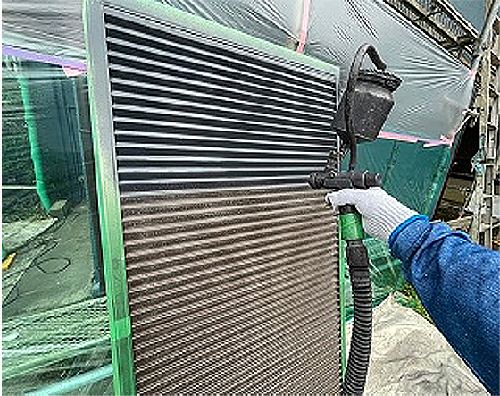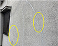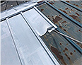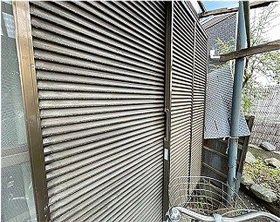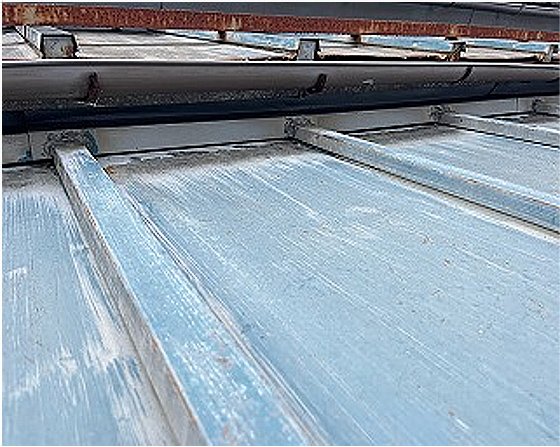 屋根瓦棒、外壁モルタルの施工事例です。外壁にはカビ・藻等の発生が視られました。これらの上から塗装をしても死滅させない限りまた発生してしまう事が予測出来ます。この様な場合弊社では必ず、除菌剤を塗布する事からの塗装工程を取入れております。クラックの発生が各所に見られました。この場合クラックの奥までエポキシ樹脂系接着剤を注入してクラックを補修します。弊社では中圧注入器にての処理を取り入れております。屋根には経年劣化による錆・退色・艶低下等が全体的に視られました。この様な場合、下地調整時の目荒らし・研磨等は基より錆止め処理からの塗装工程が最も大切であると弊社では考えております。又昨今の猛暑を考え弊社では遮熱塗料を推奨させて頂きます。